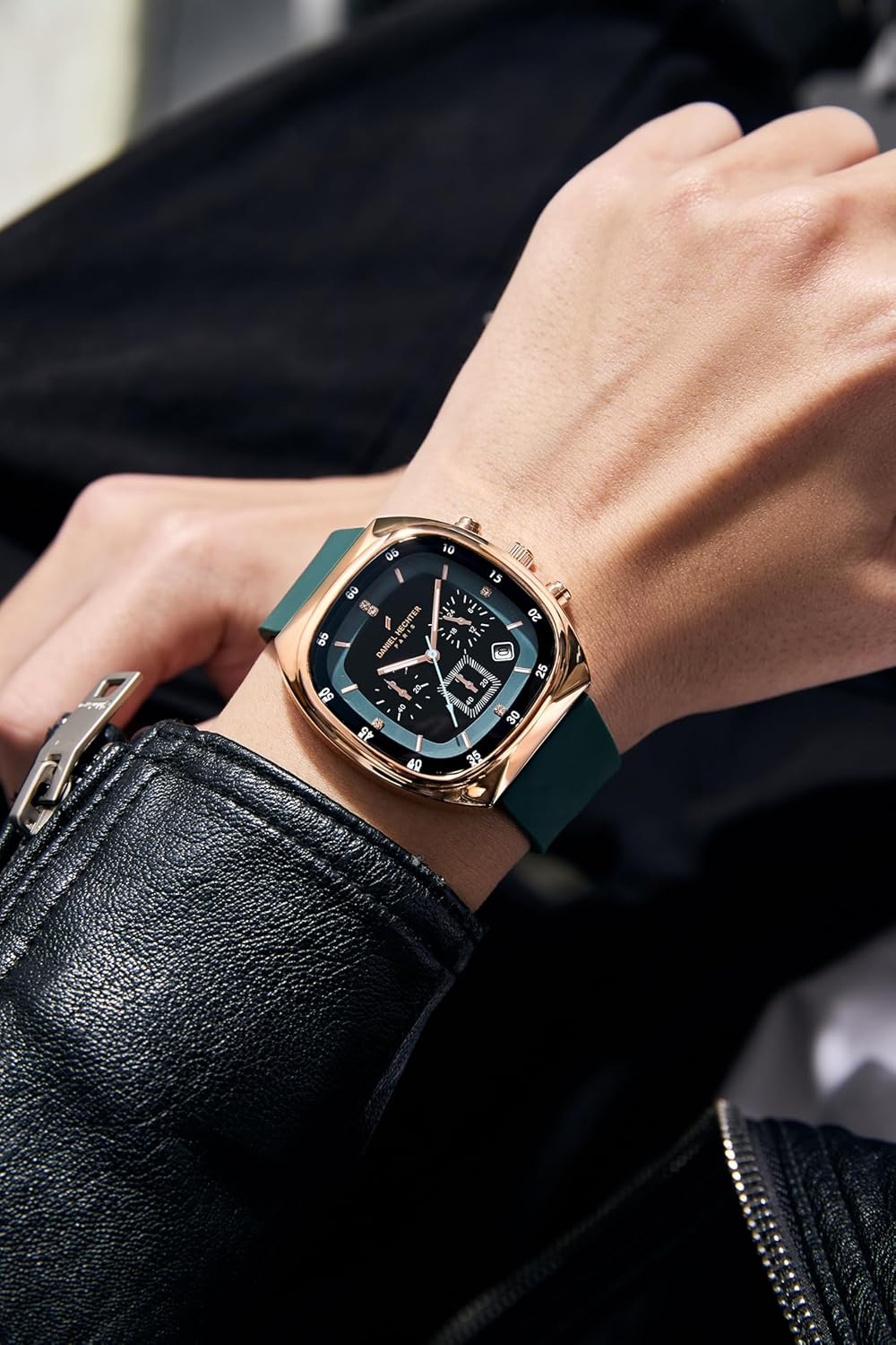 • Multifunctional Features: Chronograph with three subdials for stopwatch functionality and date display window.