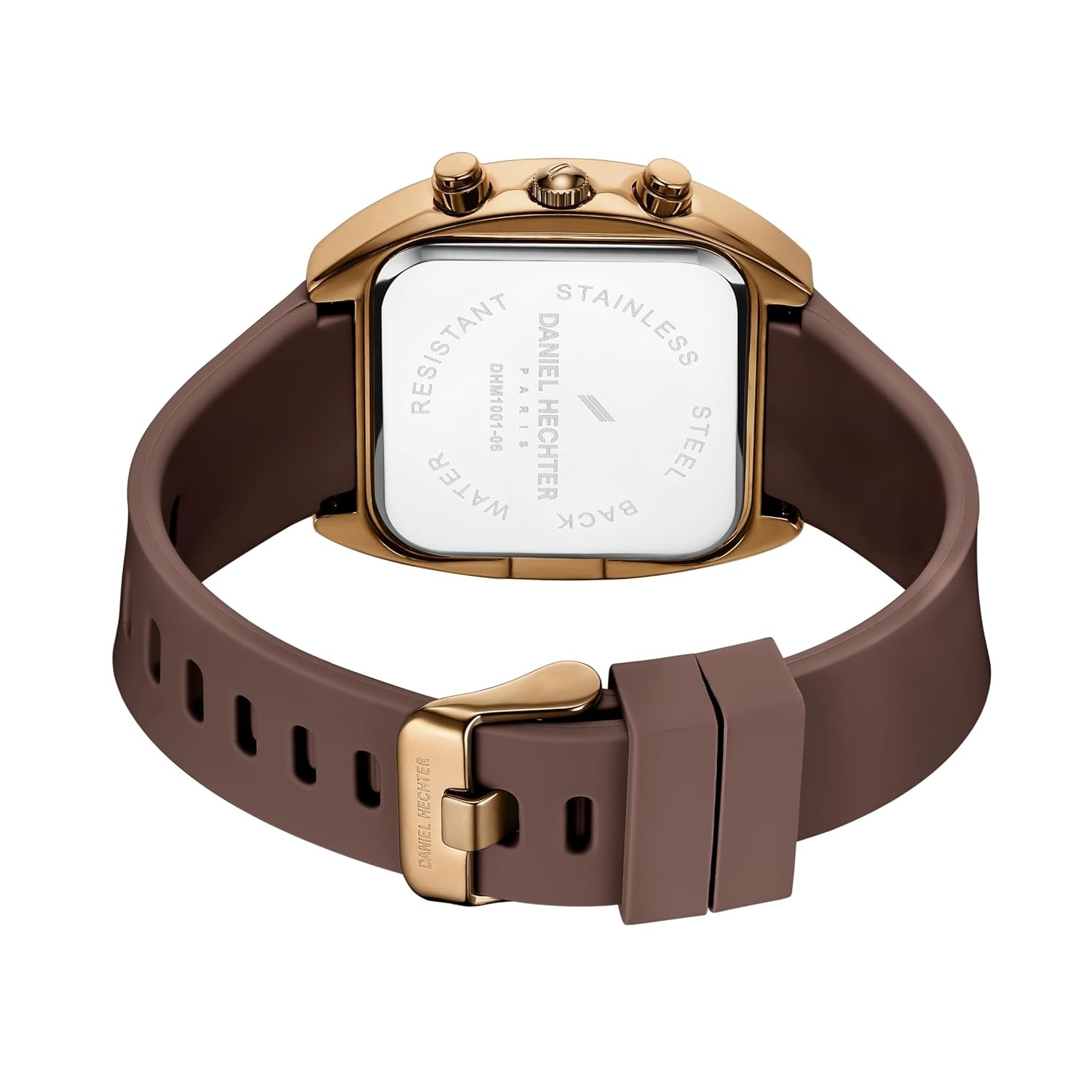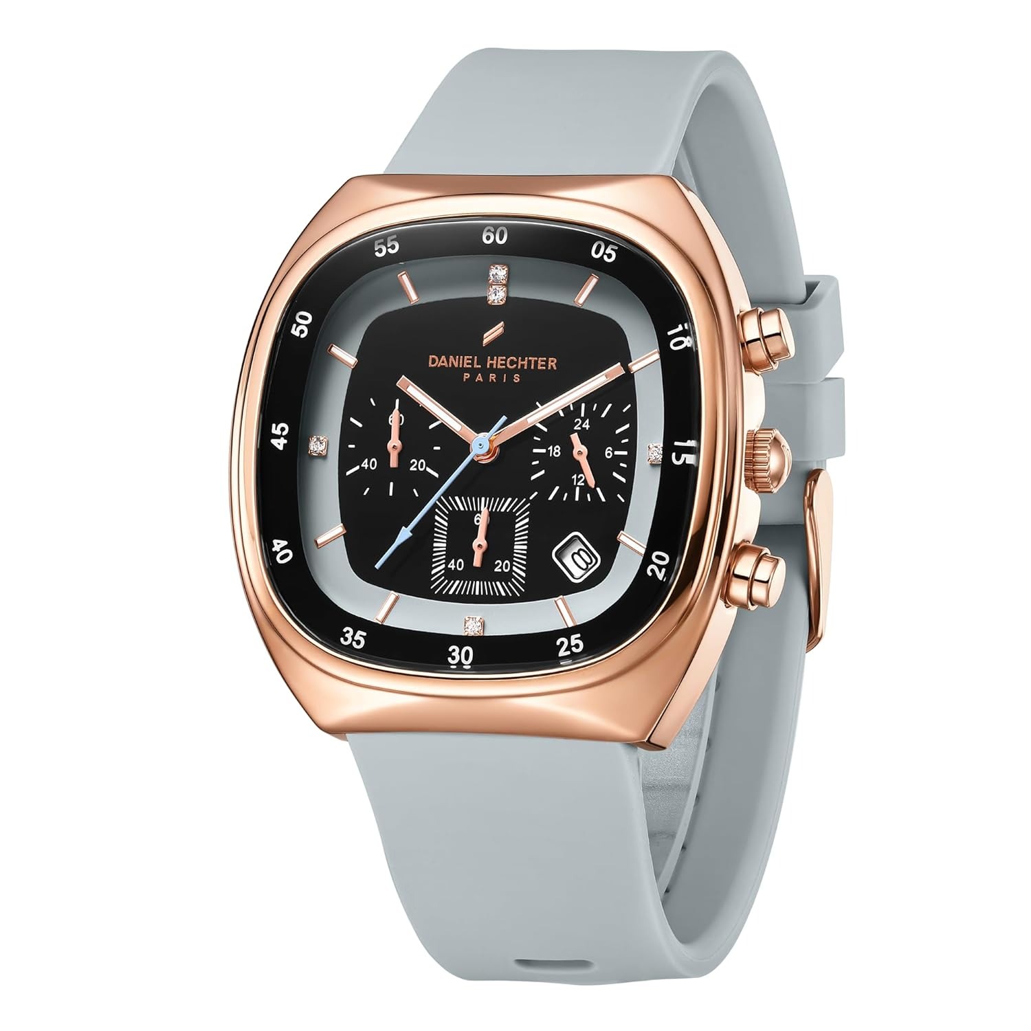• Brand & Design: Daniel Hechter Paris men’s chronograph watch with a modern cushion-shaped black stainless steel case.